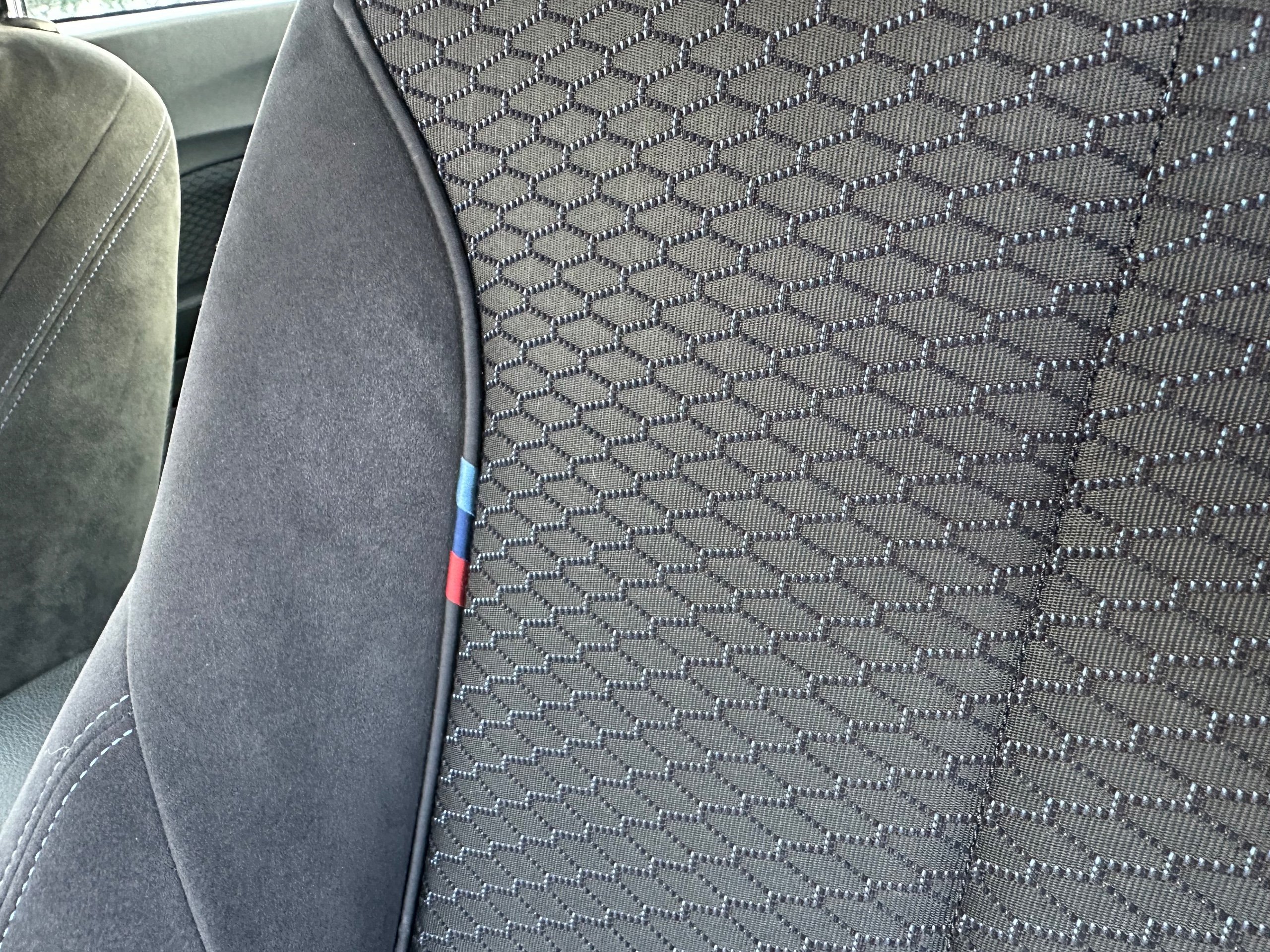 - Hexagon Cloth-Alcantara - Anthracite with Blue Hexagonal Highlight